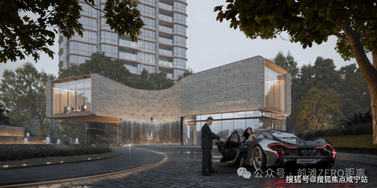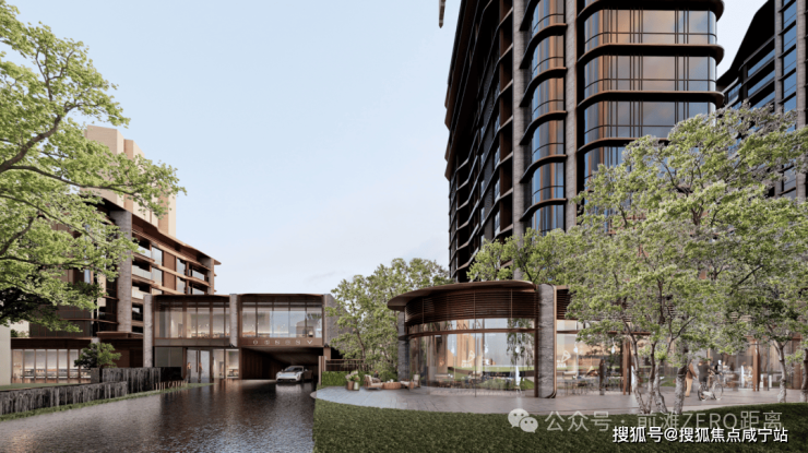 在低密区构建出风貌各异而又和谐统一的园林体系,精心打磨的巷道门头、迎宾树木、涌泉水景与石材景墙,营造出步移景异的东方隐贵氛围