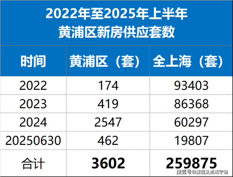 2022年-2025年上半年,黄浦区新房供应仅约3602套,占总供应的1.38%,供应套数极少!