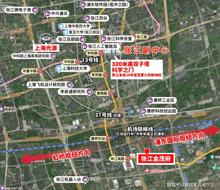 南北贯穿张江科学城的21号线(在建中),则进一步打通项目与张江的价值链条。