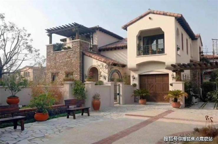 同润圣塔路斯采用美国南加州的建筑风格,外立面采用淡黄色的手工Stucco抹灰外墙和红瓦屋顶,将原汁原味的南加州风格复刻至此,同时融入原木、三色瓦片、红砖、铁艺、各式烟囱等元素,渗透一砖一瓦,仿佛置身异国小镇。