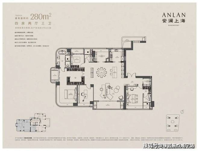 建面约280㎡,总价预计4300-5600万,折算单价15.3-20万元/㎡