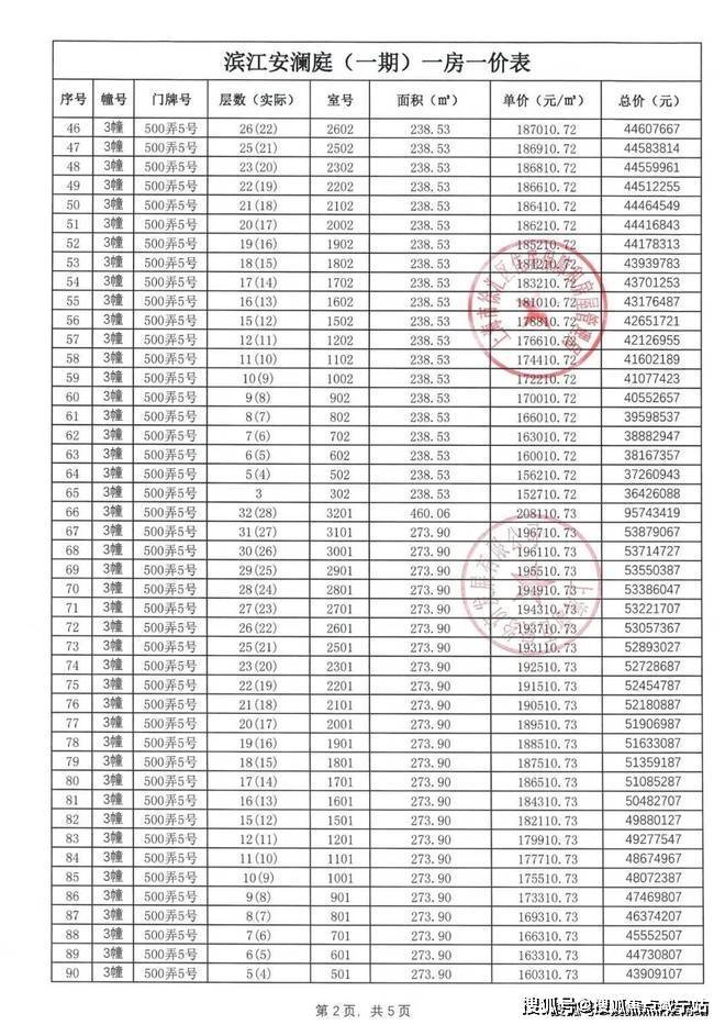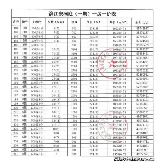 【安澜上海】一房一价表: