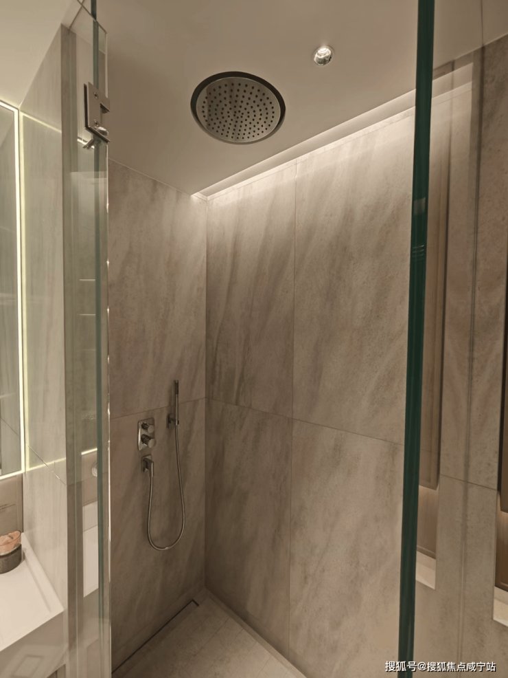 卫生间的顶喷也是预埋了水路和吊顶,都要严丝合缝匹配,安装成本是普通的淋浴房的5倍左右。