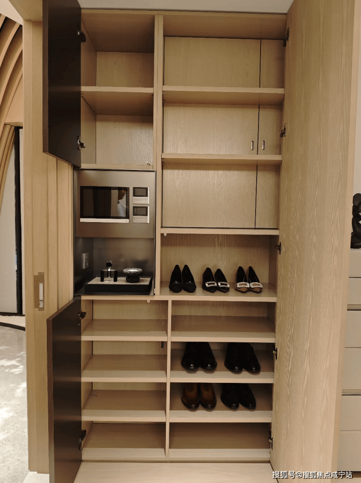 更吸引眼球的是「衣柜」部分,天安是少数交付衣柜的项目,且交付大量衣柜的项目。目前样板间使用的是德国高端品牌德禄的定制衣柜。(装标还在确定中,仅供参考)