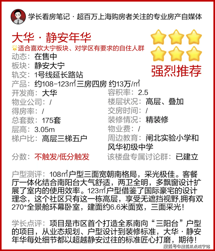 要知道,静安教育高地拢共不过三处:静安寺附近、静教院周边,以及项目所在的“风华-闸实教育圈”。前两者虽地段好,但“房价高、房龄老”是不争事实;而大华·静安年华拥有全新房龄+全新产品力+价格优势。