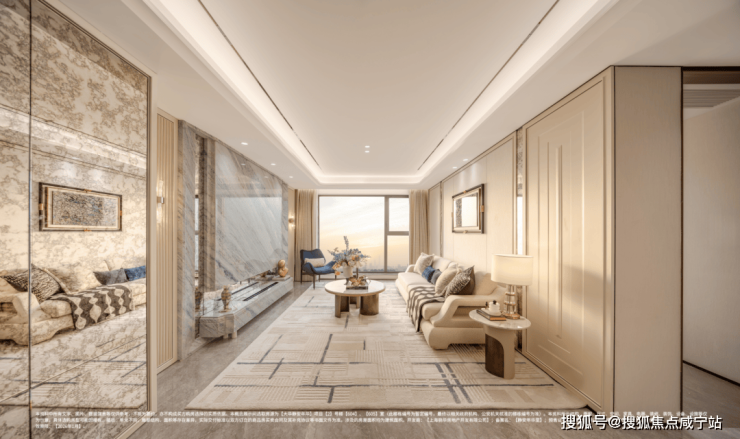 ②、108户型客厅面宽达约3.5米(常规约3.3-3.4米),搭配落地窗,通透感十足。