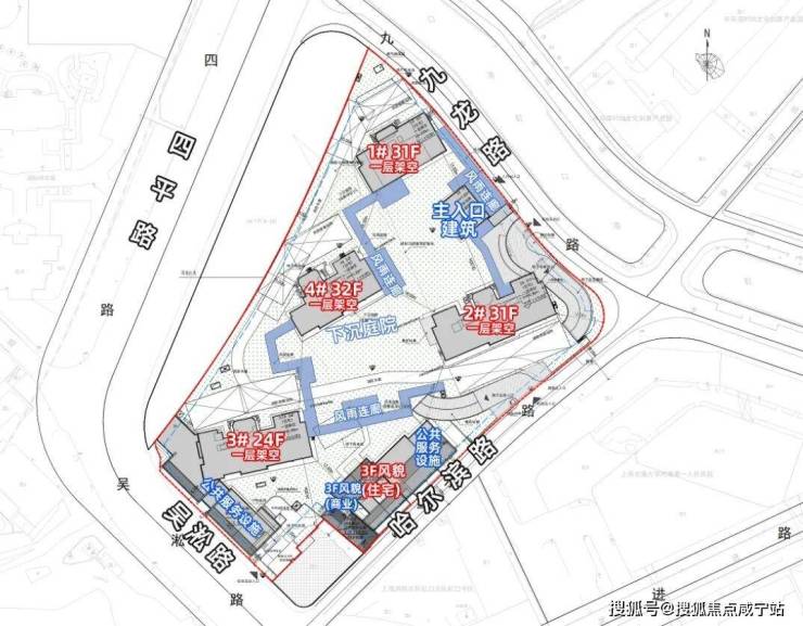 根据设计方案显示,项目拟建4幢24-31层高层住宅以及1幢总高3层的风貌建筑。
