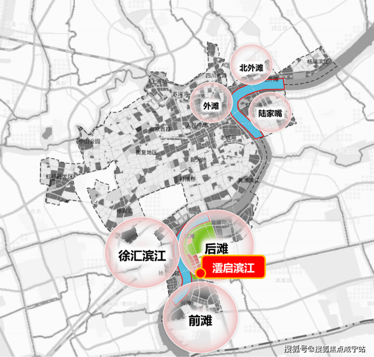 黄浦江在市区有两个自然S湾,第一条S湾孕育出「外滩-北外滩-陆家嘴」世界级会客厅,第二条S湾诞生了「世博-前滩-徐汇滨江」新黄金三角。而每一条S湾都有且仅有一个S湾心,即陆家嘴和后滩。