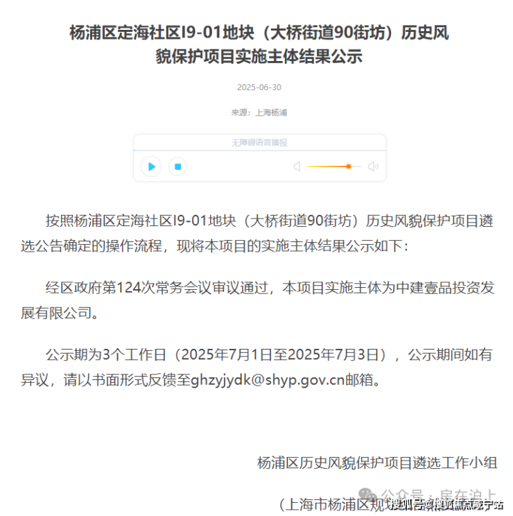 前段时间,杨浦定海社区I9-01地块(大桥街道90街坊)历史风貌保护项目遴选结果公示:中建壹品投资发展有限公司成功拿下杨浦大桥街道90街坊地块。
