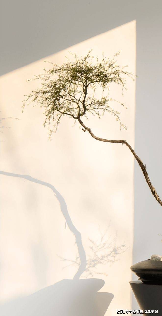 器物、枝叶缔造了虚实相生的意境,在墙面上留下了唯美的“倩影”,进而丰富了空间内在。