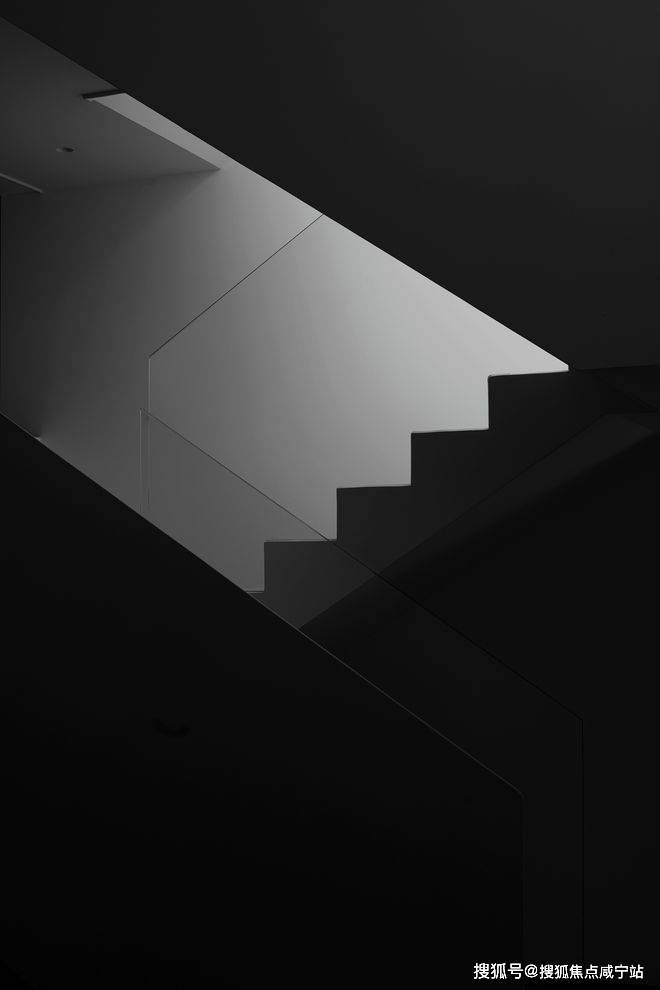 楼梯选用了纯白色,光是唯一的装饰品,在寻常中展现着空间最为纯粹的美。
