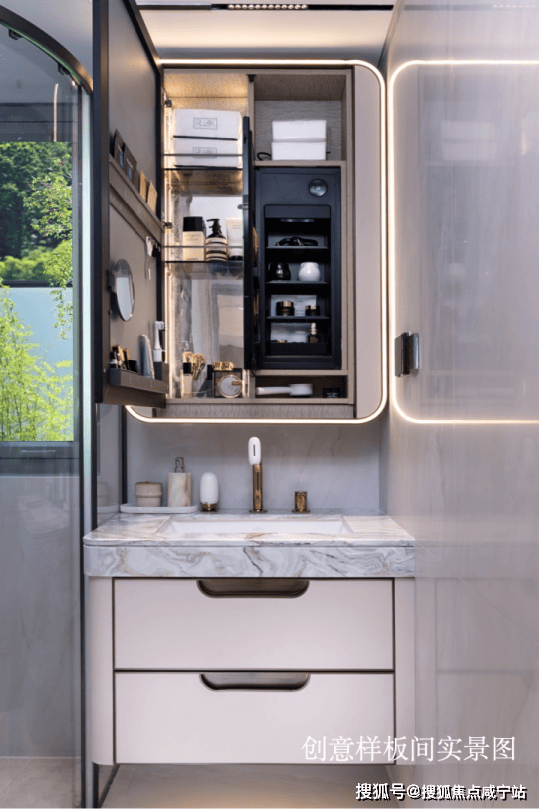 项目的价值提升力体现在严选的品牌体系与人性化细节中。国际一线品牌的选用构成了品质基底,而特别值得关注的是对特定生活场景的深度挖掘。例如,专为女主人打造的双补光镜柜、恒温美妆冰箱等“女神美妆四件套”,将卫浴空间升级为个性化的美妆疗愈空间。