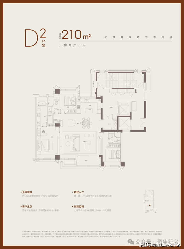 【3#210㎡户型】——南向俯瞰下沉式庭院,北侧私藏浮光池院。
