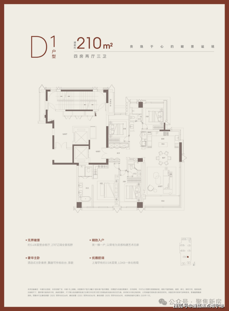 建面约210㎡,分为中间套与边套产品: