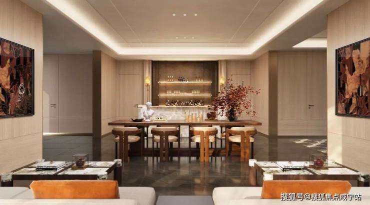 无界屏玻璃中央会客厅,270度视野无敌!未来业主可以这里品茶、会客、休闲、健身,兼顾社交场景与美学享受,满足全龄业主的品质生活所需。