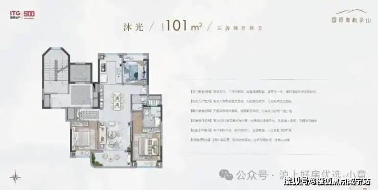 在户型规划上更是凭借小高层无连廊+飞机户型的设计优势,将室内的实际使用空间做到了最大.所以,虽然户型的建筑面积是约101㎡的3房,但整个空间的尺度感却能匹配改善型的宽绰3房.