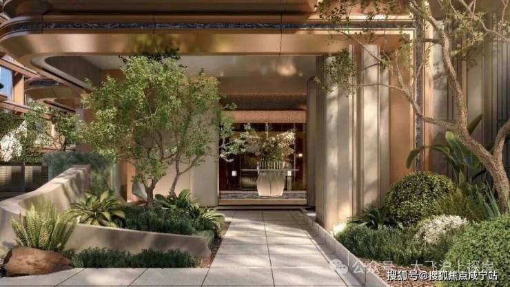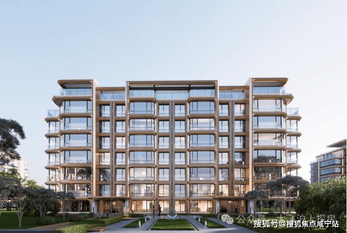项目立面设计堪称点睛之笔:以现代简约的森系造型为形,香槟金的流动曲线为韵,厚重石材的品格为骨,珐琅的历史印记为魂。