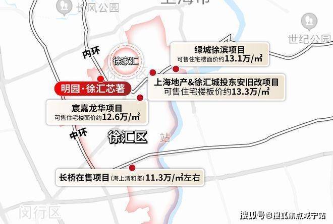 明园·徐汇芯著东侧的尚汇豪庭挂牌均价约17.1万/㎡;其他内中环的次新房挂牌均价普遍在15万+/㎡;西侧大古北的次新房,挂牌均价也达到14万+/㎡。