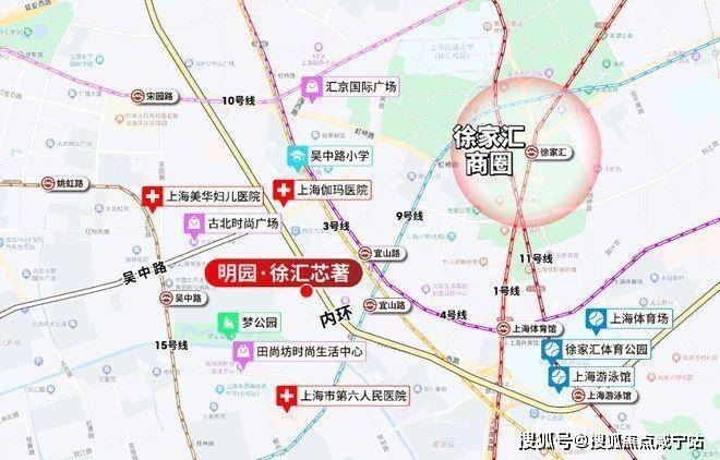 交通便捷:明园徐汇芯著项目紧邻内环高架、沪闵高架等主干道,步行可达地铁3/4/9号线宜山路站及15号线吴中路站,3公里范围内覆盖多条轨道交通线路。