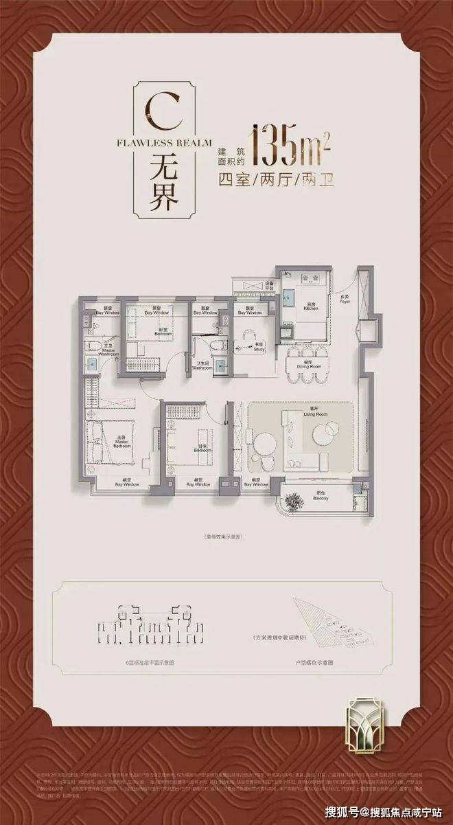 再加上南向大面宽短进深、全卧飘窗、L型转角阳台设计,尺度感都超棒,采光和视野更是一流。