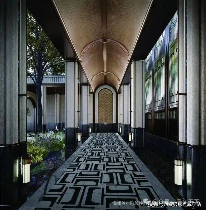 建发海阅首府售楼处电话☎:400-8800-703【售楼热线】✔✔✔特别是下面这样一个时光长廊,将社区中的风雨连廊经由海派风格重新演绎,拱形的吊顶、石材的立柱、繁花的地面拼花,让人梦回那老上海的摩登年代。