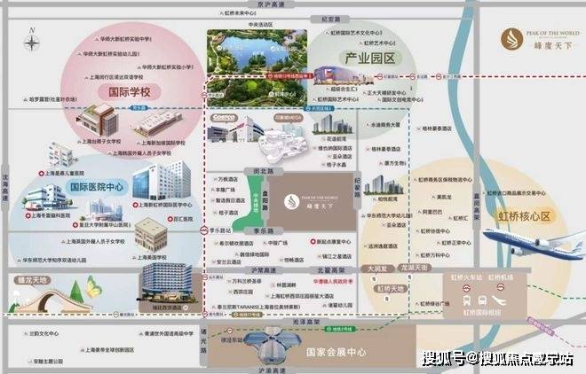 立体交通:虹桥交通枢纽,机场,高铁站,地铁(2.10.17号线),公交,出租等立体交通路网;
