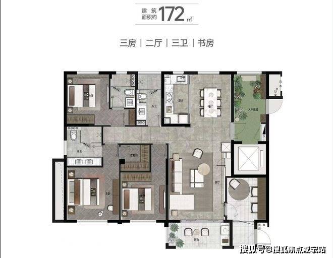 南向奢华五开间,尽享无界阳光罕见三套房设计,全明三卫稀缺4+2户型,满足一生之宅!