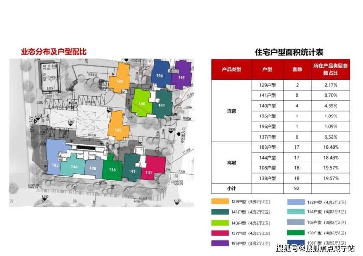 C地块容积率2.33,由一栋18层的小高层和两栋6层的花园洋房组成,共92套房源,产品建面约108-196㎡。