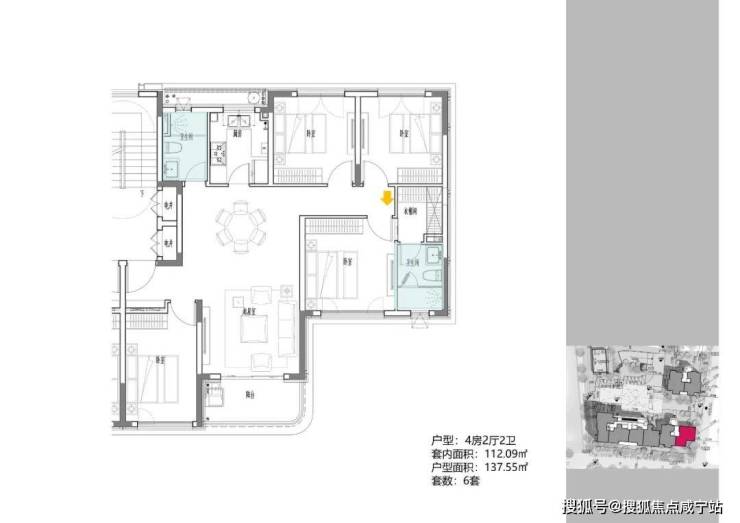 B地块容积率2.94,只有一栋小高层,共67套房源,产品建面约108-148㎡。