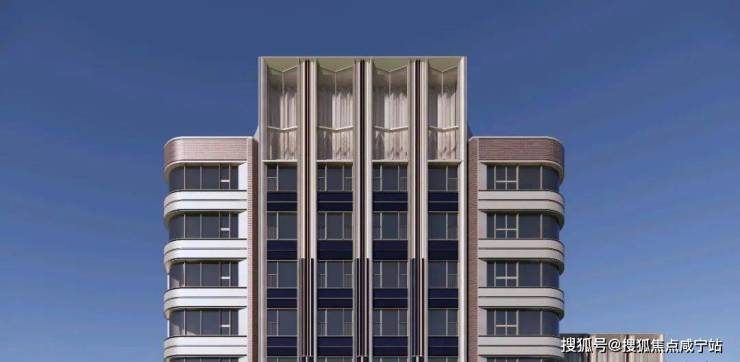 建筑 立面色彩以珍珠蓝为核心,搭配香槟金、摩登红。