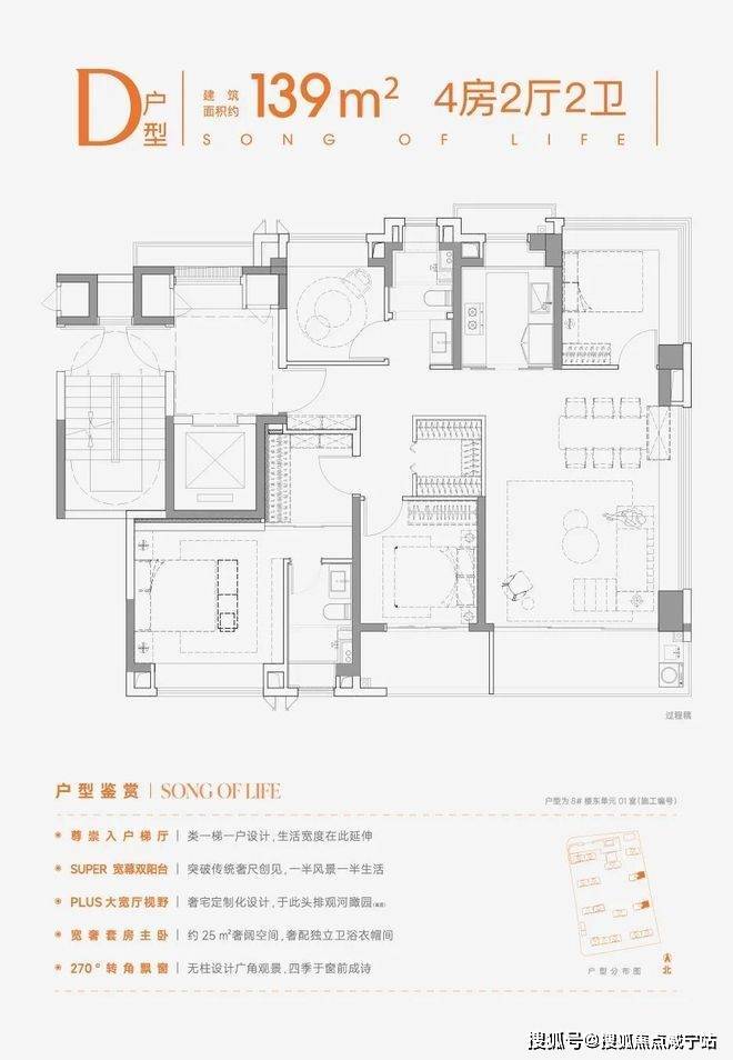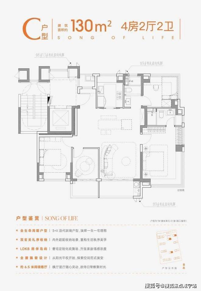 ②、户型再突破:户型面积段从原来70㎡起步,升级为约91-139㎡3-4房,更贴合当下家庭改善需求;全系标配双阳台;边套(除139户型)均配备双270°飘窗,中间套也有270°飘窗设计,实现「实得率+视野」双重提升。