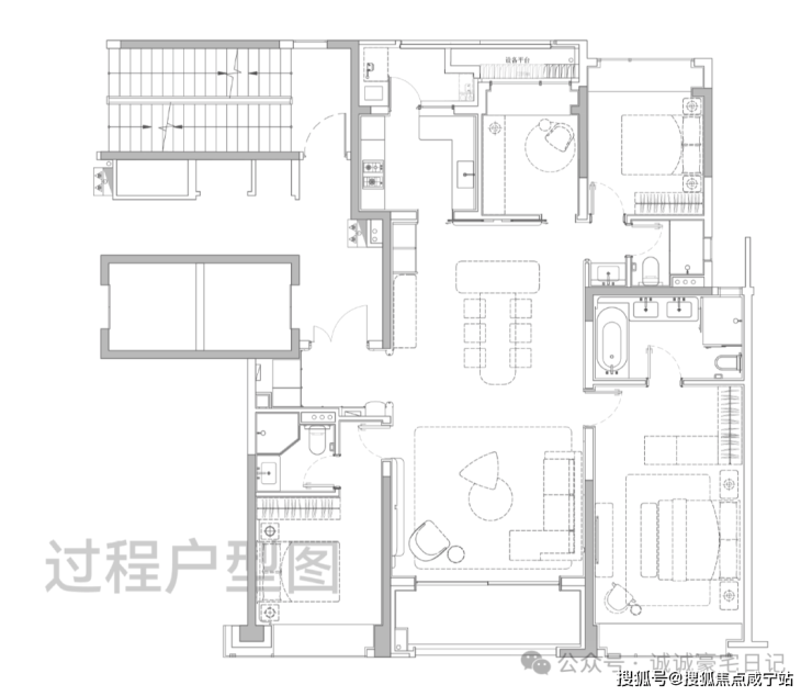 主卧配置步入式衣帽空间、双台盆+大浴缸主卫。