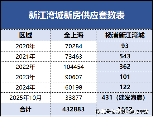 在2020-2025年10月,杨浦新江湾城总共供应了1652套房源,仅占上海全市供应量(432883套)的0.3%!这还是包含本案供应的431套房源的结果!