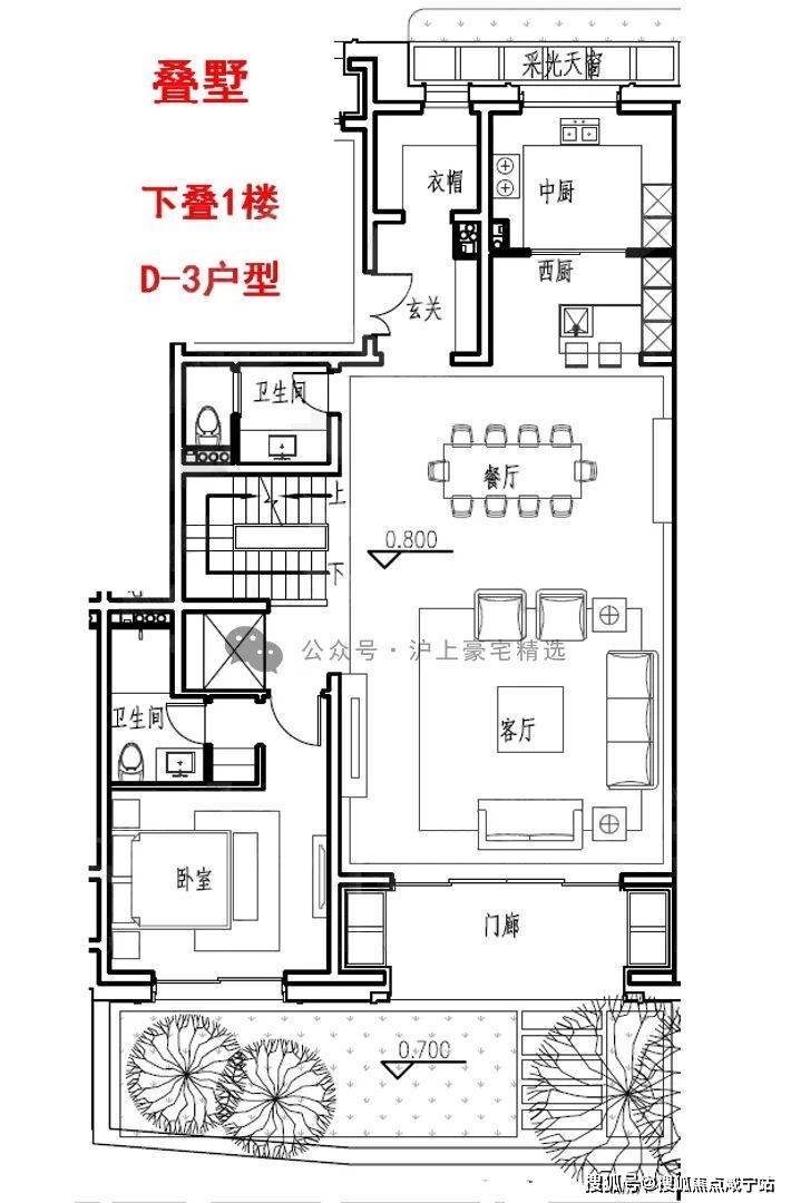 然后是叠加别墅的D-3户型约297㎡下叠。