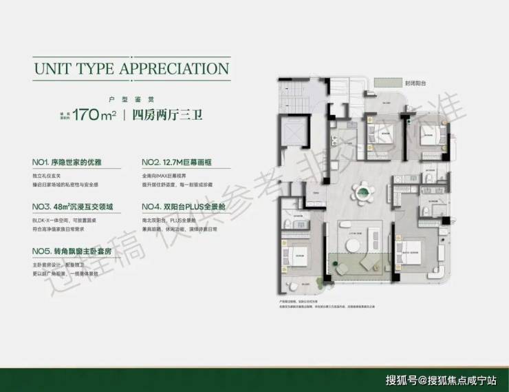 除了阳台外,项目户型设计还有很多出彩的地方,主力建面约170-200-220-240-270方,下面我们结合户型分析一起来看: