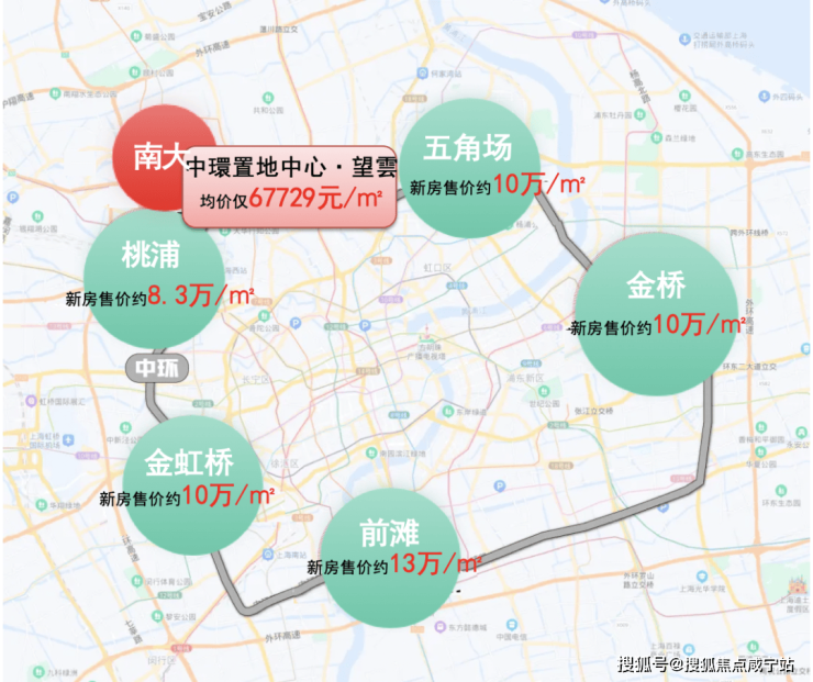 杨浦新房约10万/㎡,桃浦约8.3万/㎡,金虹桥约10万/㎡,前滩约13万/㎡,而中環置地中心·望雲过会均价仅67,729元/㎡。这样的价格在中环线上形成了明显的“断层”,性价比简直爆棚。