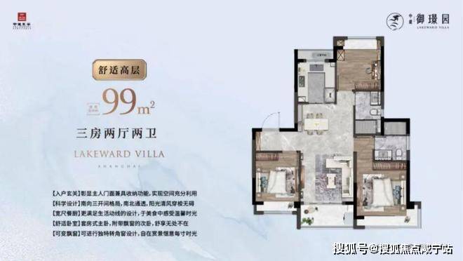 建面约99㎡3房2厅2卫,这是一个功能性和尺度感完美结合的明星户型。