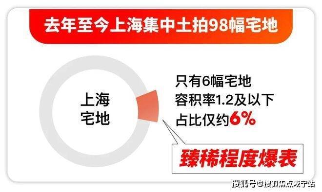 2023年至今,上海集中土拍合计98幅宅地,容积率1.2及以下宅地仅有6块,占比仅约6%,臻稀程度爆表!