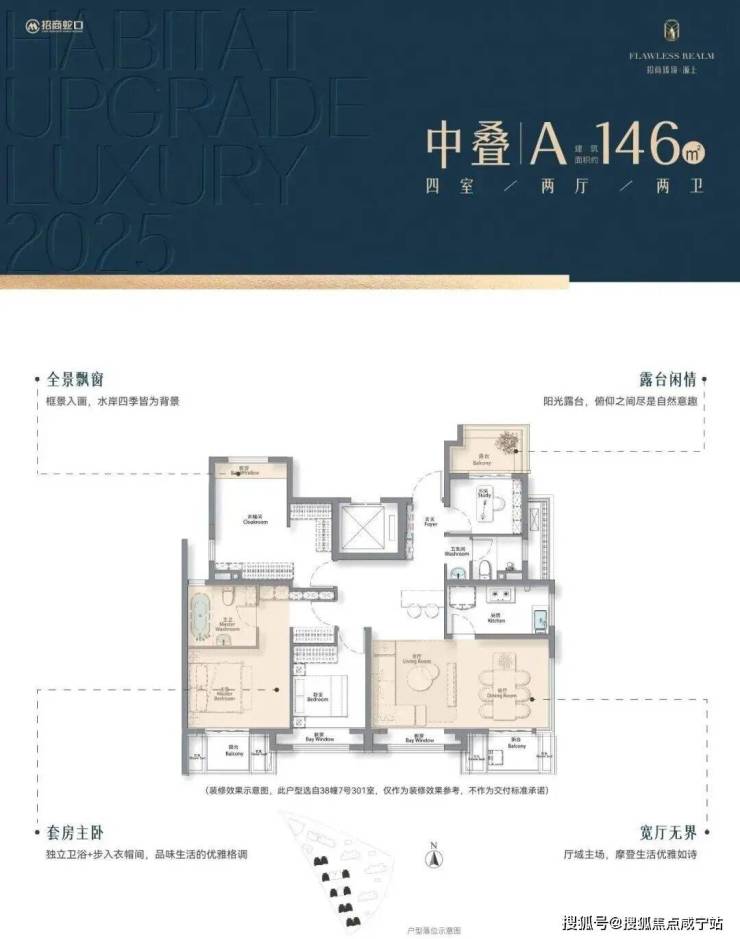 此外,项目还推出了建面约146-152㎡滨水叠加,同样进行了空间革新,户型图如下↓