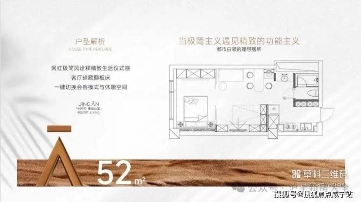7号楼SOHO公寓两厅一卧一卫的设计,层高3.5米,产权面积52.41㎡,全朝南设计,整体装修呈现“法式浪漫主义”。