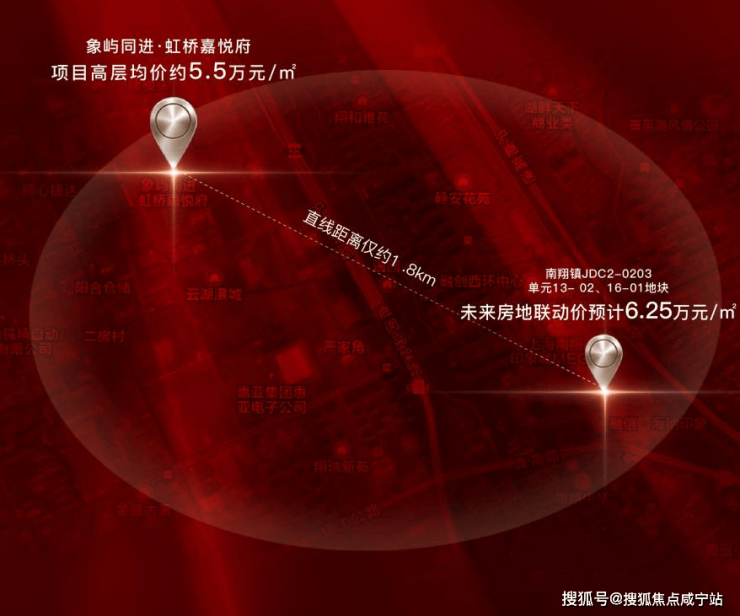 虹桥嘉悦府直线距离这块地仅约1.5公里,精装高层售价仅约5.5万/㎡,性价比很高!