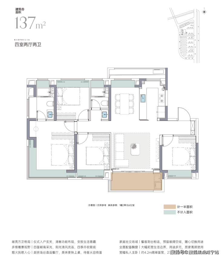 预算更高的,可以考虑项目建面约125㎡和137㎡的四房产品: