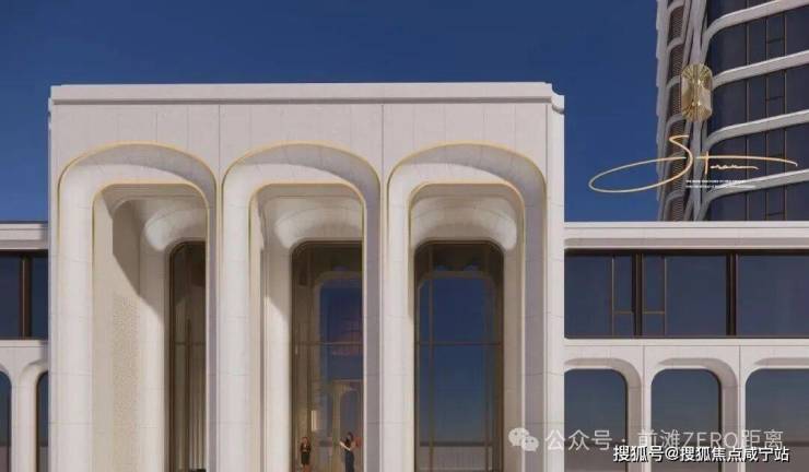 主入口汲取礼查饭店“孔雀厅”的同心拱元素,结合路易斯·康金贝尔美术馆的拱形语言,打造穿越时空的优雅符号。