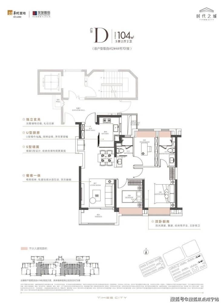 本次推出的4种户型中,建面约104㎡3房/建面约124㎡4房是首次推出的产品,更是整个项目的王炸产品。
