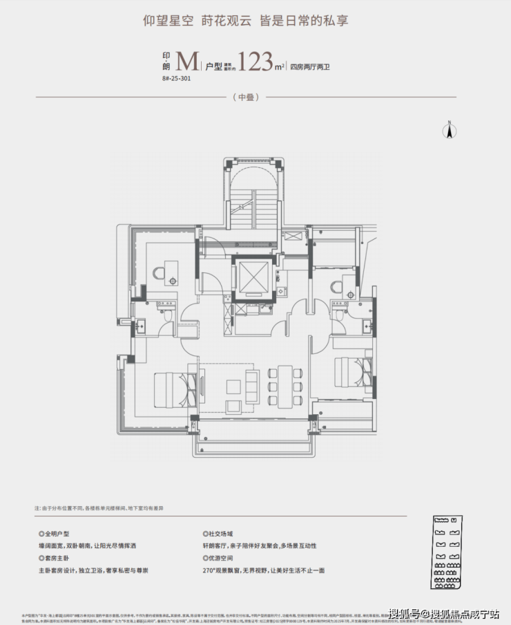 产品是一个新盘立足的根本,这次华发推出的建面约123㎡四房,属实是把改善户型的格局打开了——这个面积段四房不稀奇,但能把独立前厅、全景阳台、花池、四叶草户型这些“豪宅标配”全都塞进去,放眼整个市场都太狠了。
