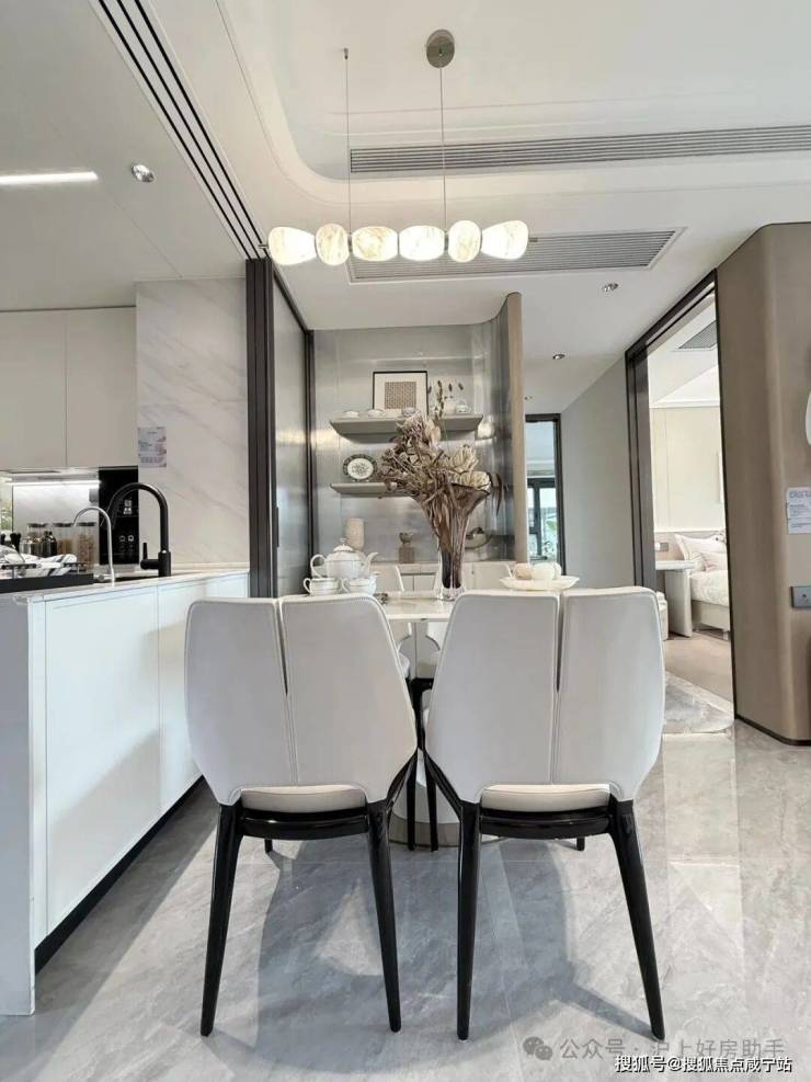 宽幕横厅将客厅、餐厅与厨房流畅衔接,形成一个敞亮通透的超级家庭厅。巨大的开间尺度赋予空间极强包容性,无论是家庭日常互动、亲友欢聚畅谈,还是举办小型派对,都能在此从容展开,成为承载温馨与欢乐的理想场所。