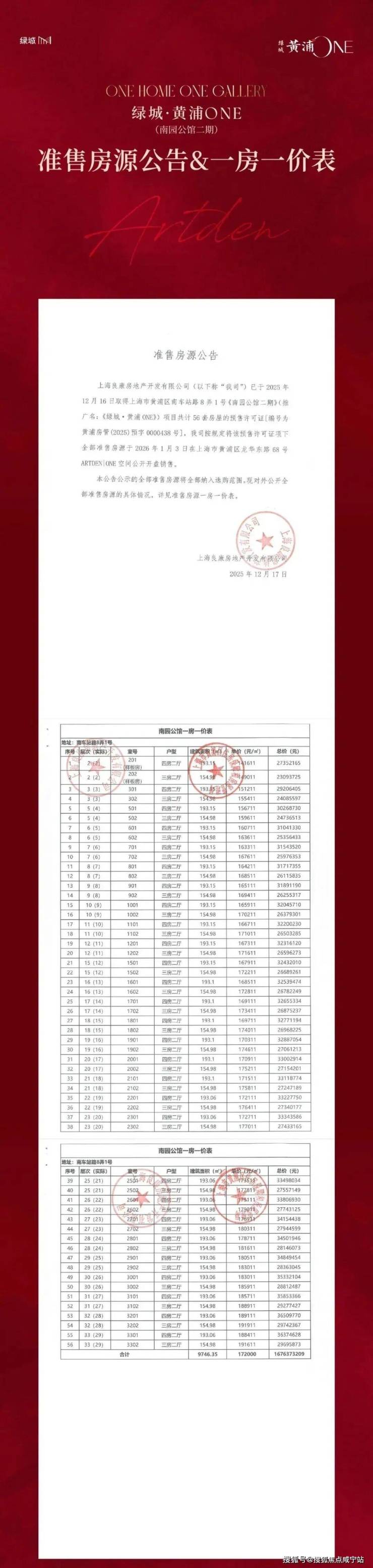 据悉【绿城黄浦ONE】二期加推建面约155-193㎡3-4房(高层),均价17.2万/㎡,总价约2300万起,收官56席,不容错过!项目接待中心持续开放中,样板间已开放!