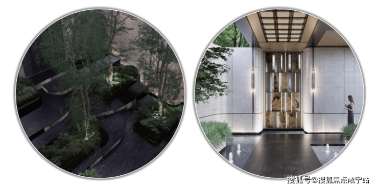 整条景观轴上设有双下沉式庭院,以此增强社区的精致感和层次感。