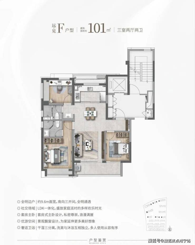 142套建面约91~102㎡3房