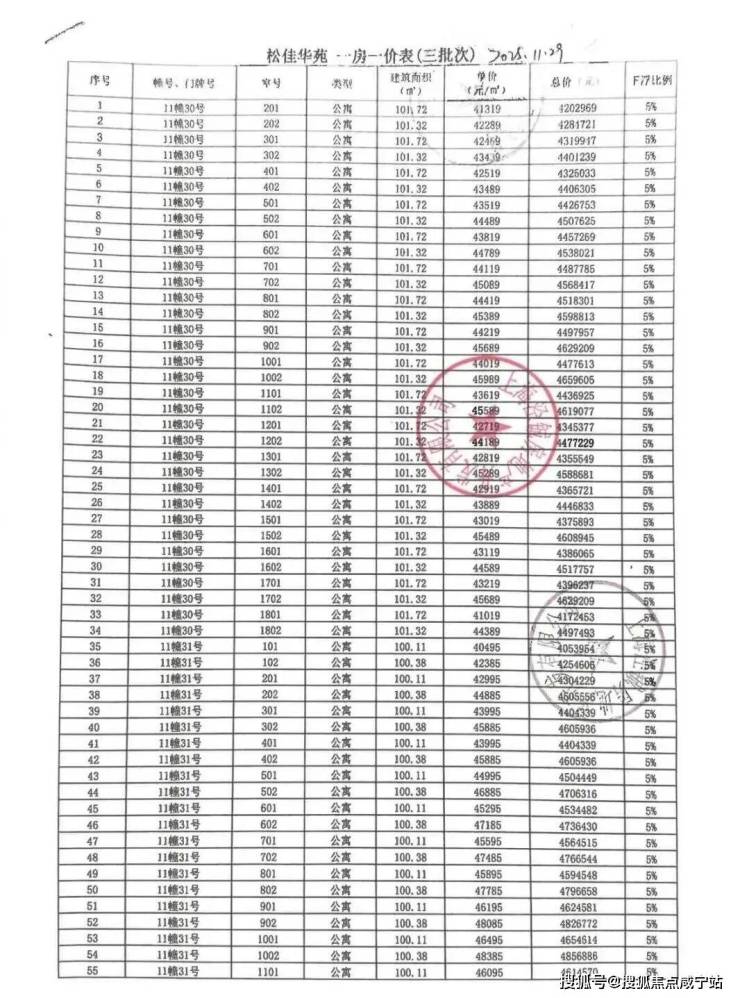 一房一价表如下